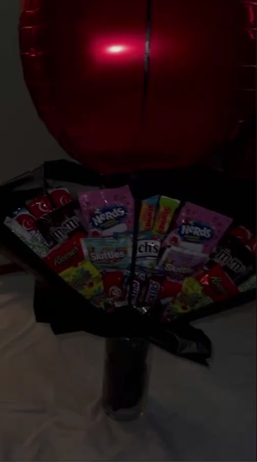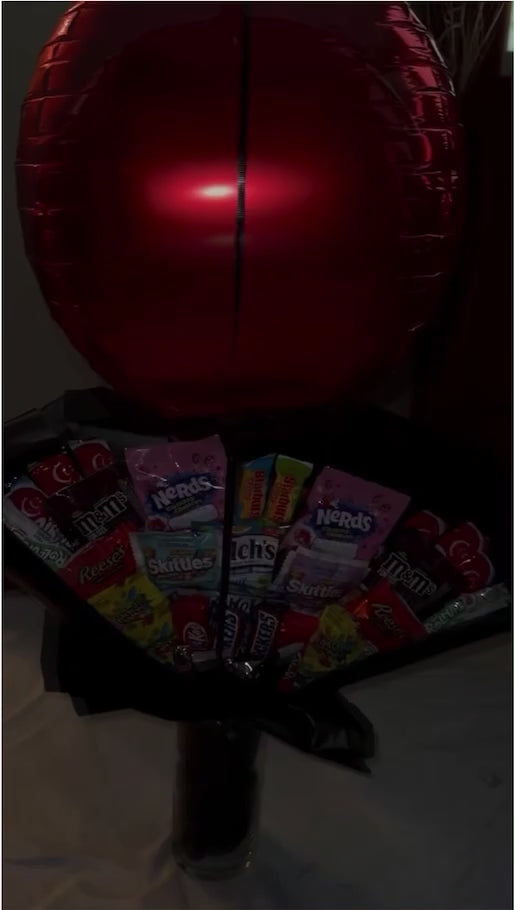 Candy/ Balloon Arrangement in Tall Glass Vase